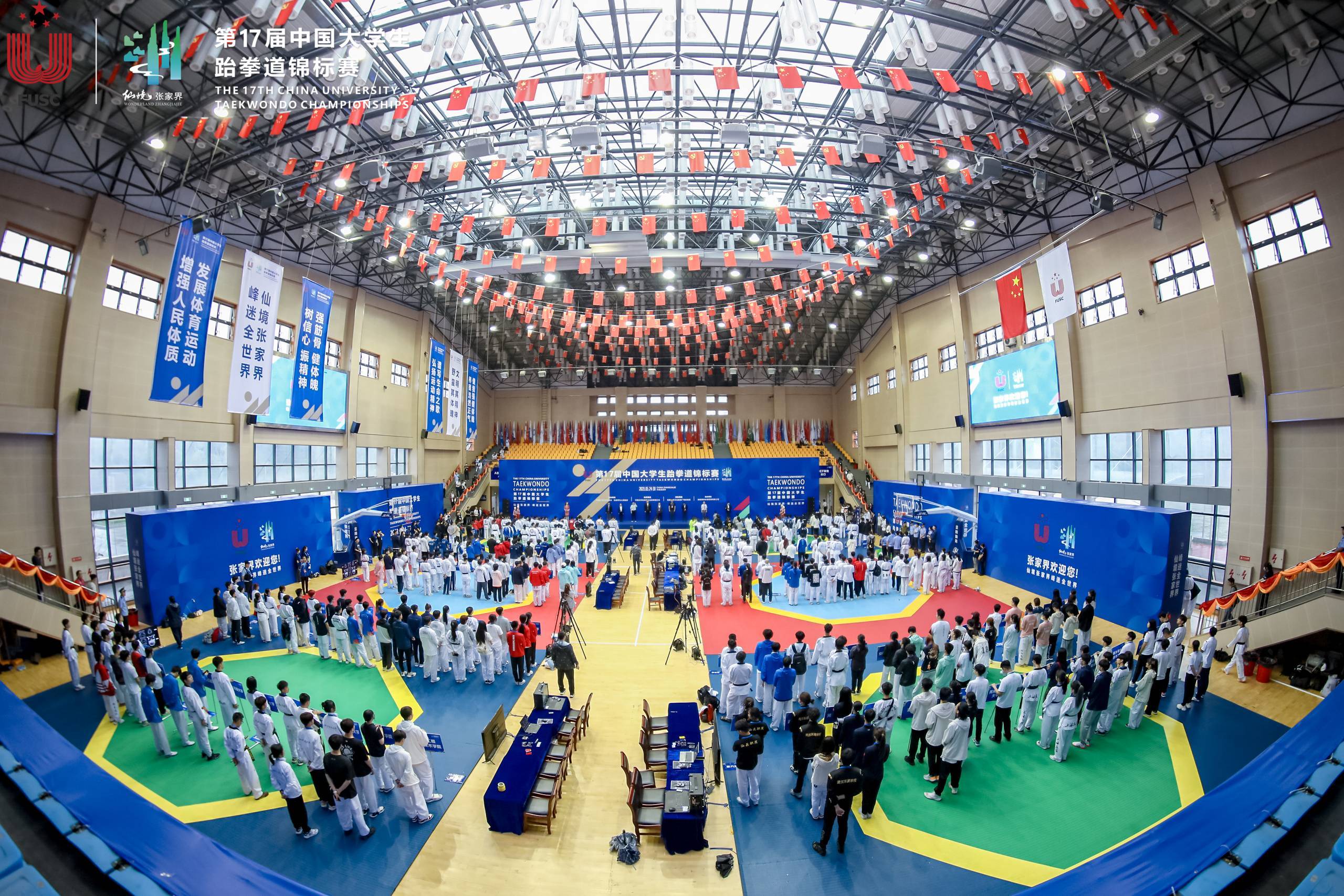 5月29日,第17届中国大学生跆拳道锦标赛在湖南省张家界市第一中学体育馆圆满落幕,本次比赛为期四天,共有来自浙江大学、中山大学、南开大学、中国地质大学等高校的185支队伍,1500余名领队、教练员、运动员。