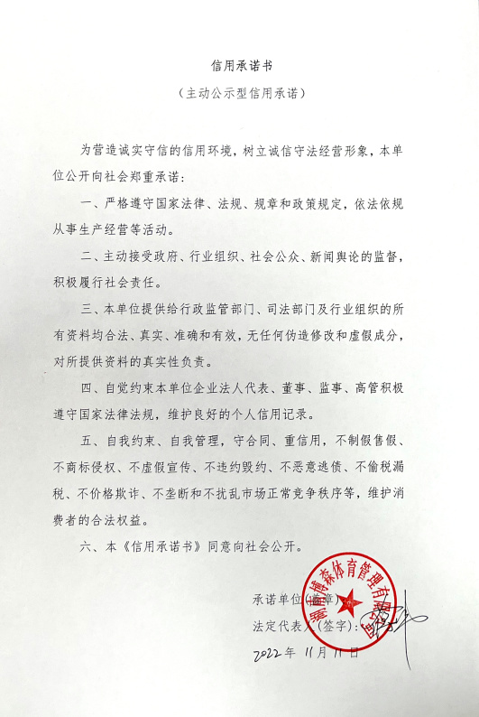 公司作为市体育行业社会主体代表,始终坚持诚信为本、守信为先,为客户提供全面、专业、有效的体育服务。在今后的生产经营中,将持续发挥示范表率作用,严格遵守《湖南省社会信用条例》内容,依法依规,主动接受各界的监督,积极履行社会责任。